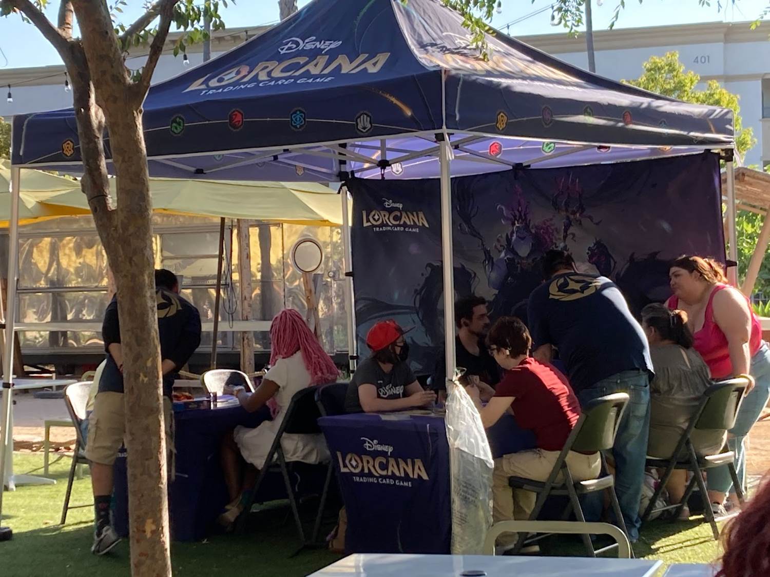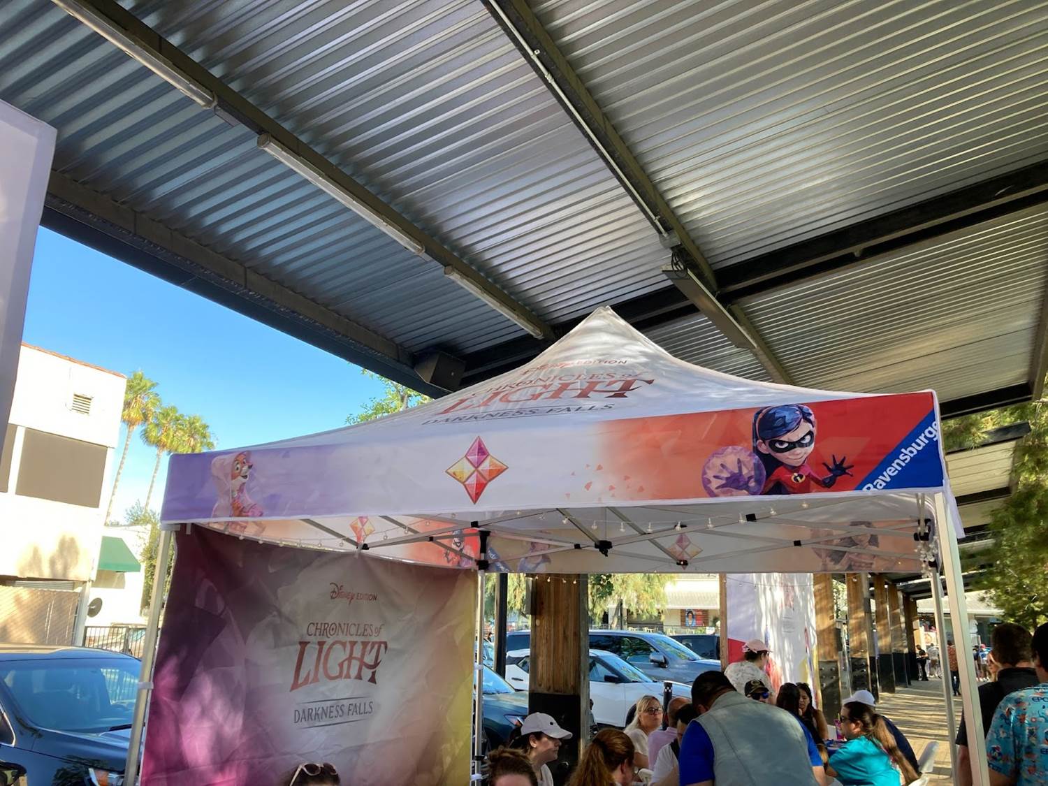 Moving on, over in the Farmer’s Park area of the District, Ravensburger set up tents offering demonstrations of Chronicles of Light: Darkness Falls (Disney Edition) — a game that I absolutely loved, by the way. Additional tents also saw fans playing the hit game Disney Lorcana. Then, over at Unsung Brewing Co., the Villains Lair area invited gamers to play various versions of Disney Villainous. Inside the brewery, different Disney trivia sessions also happened throughout the night. While I didn’t participate, I did happen to listen in while trying Unsung’s “No Fun NA IPA."