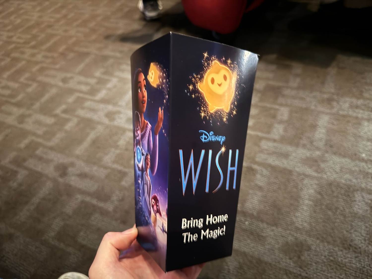 The screening itself included Once Upon a Studio (included as a bonus feature with Wish) before a sing-along version of the film. A microphone was set up and brave attendees could step up to lend their vocal talents to each song, which became incredibly adorable as kids joined in. As a surprise parting gift, attendees could choose from an assortment of Wish items, including an early copy of the film on Blu-Ray/DVD/Digital.