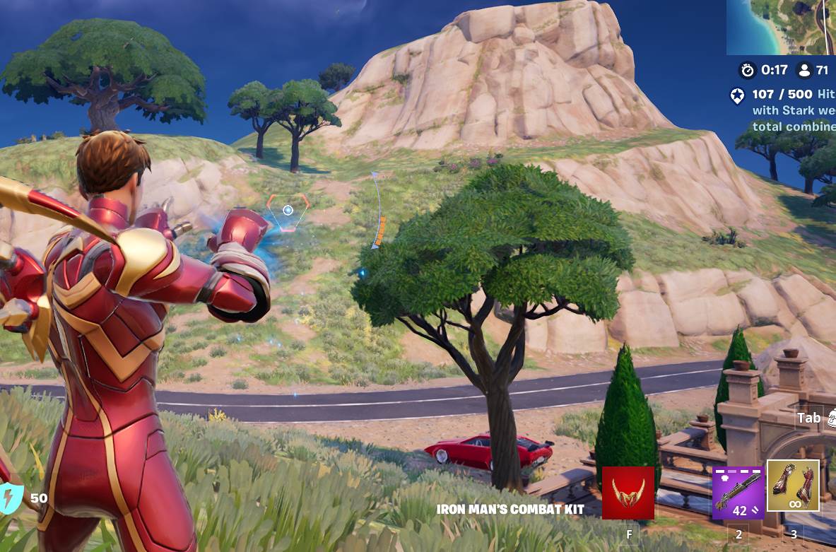 - Hit Opponents with Stark Weapons from a Total Combined Distance – Using either Iron Man’s Combat Kit, Stark Industries Energy Rifle, or Iron Man’s Flight Kit, players will have to hit opponents from a distance adding up to 500. So, if you are 20 meters away from an opponent and you land a shot, it will add 20 to your score to complete this challenge. This does not need to be completed in a single match, but if you have Iron Man’s Combat Kit, stay as far away as possible from your opponents while still being locked onto them and you’ll complete this quickly. The hardest part is acquiring one of these weapons.
