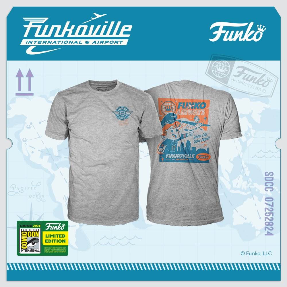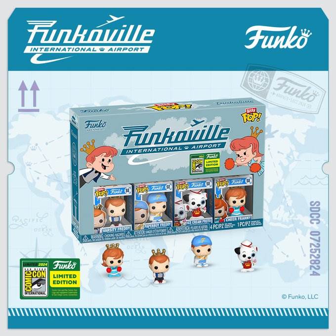 - At this year’s event, Funkoville International Airport will allow fans to fly into their fandoms at the mega-sized booth (#5241). Certain Funko exclusives will be available at other retailers, however, they will not boast the SDCC24 sticker.