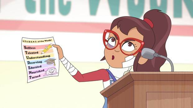 This is Hailey’s last straw - Becker is currently suspended and has also let loose wild animals in the school. How could she win?! She takes the podium and says she exemplifies each of the letters of STUDENT, even “Turned," whatever that means.