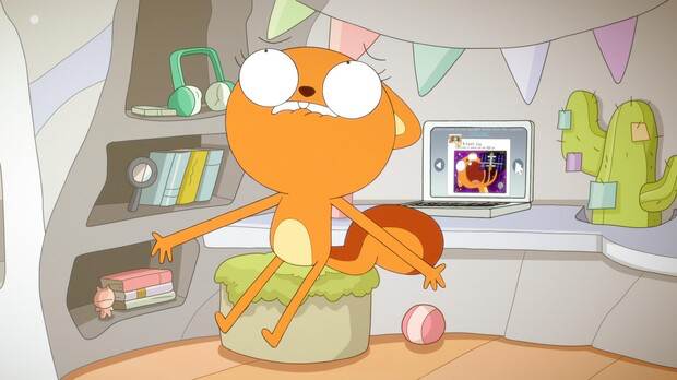 As with any meme, her fame has become instantaneous and she has quite the fan following, though Kiff is not too thrilled with the unflattering photo spreading around. Others are also editing this photo to show her eating other things aside from the burger. Fellow friends at school are running around, sharing more versions of the photo and even a fully edited Hungee Squirrel video making its rounds. This also serves as this episode’s musical number.