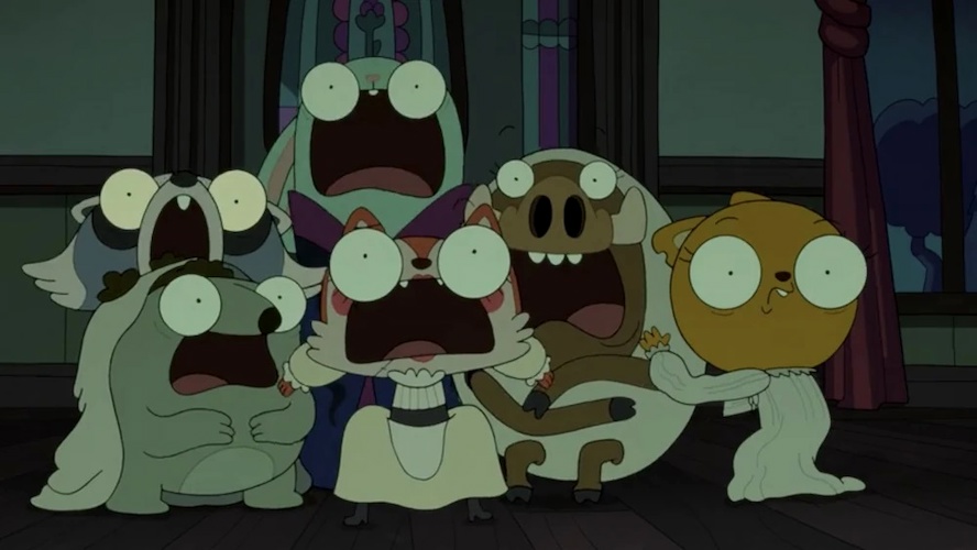 That bit, when they sort of jitter and like crawl all along the walls, I storyboarded that bit actually, because Lucy and I wrote that episode… Kiff is such a sort of cute looking, silly show, but we felt like for a Halloween special we could have these moments where we sort of get a little bit scary or unsettling briefly, but then it balances so quickly with the, with the silliness and the comedy. So that was definitely a choice… make this really feel quite reminiscent of, like, horror. And it was fun to do.