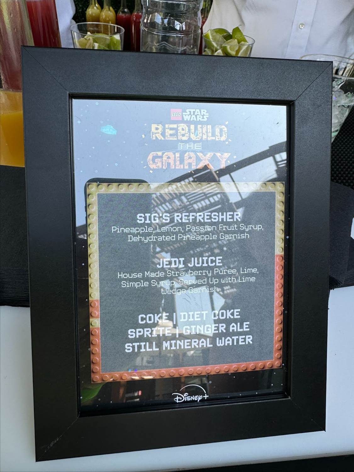 Available to invited guests of the event were specialty food and drink options themed to the characters in the LEGO Star Wars: Rebuild the Galaxy miniseries.
