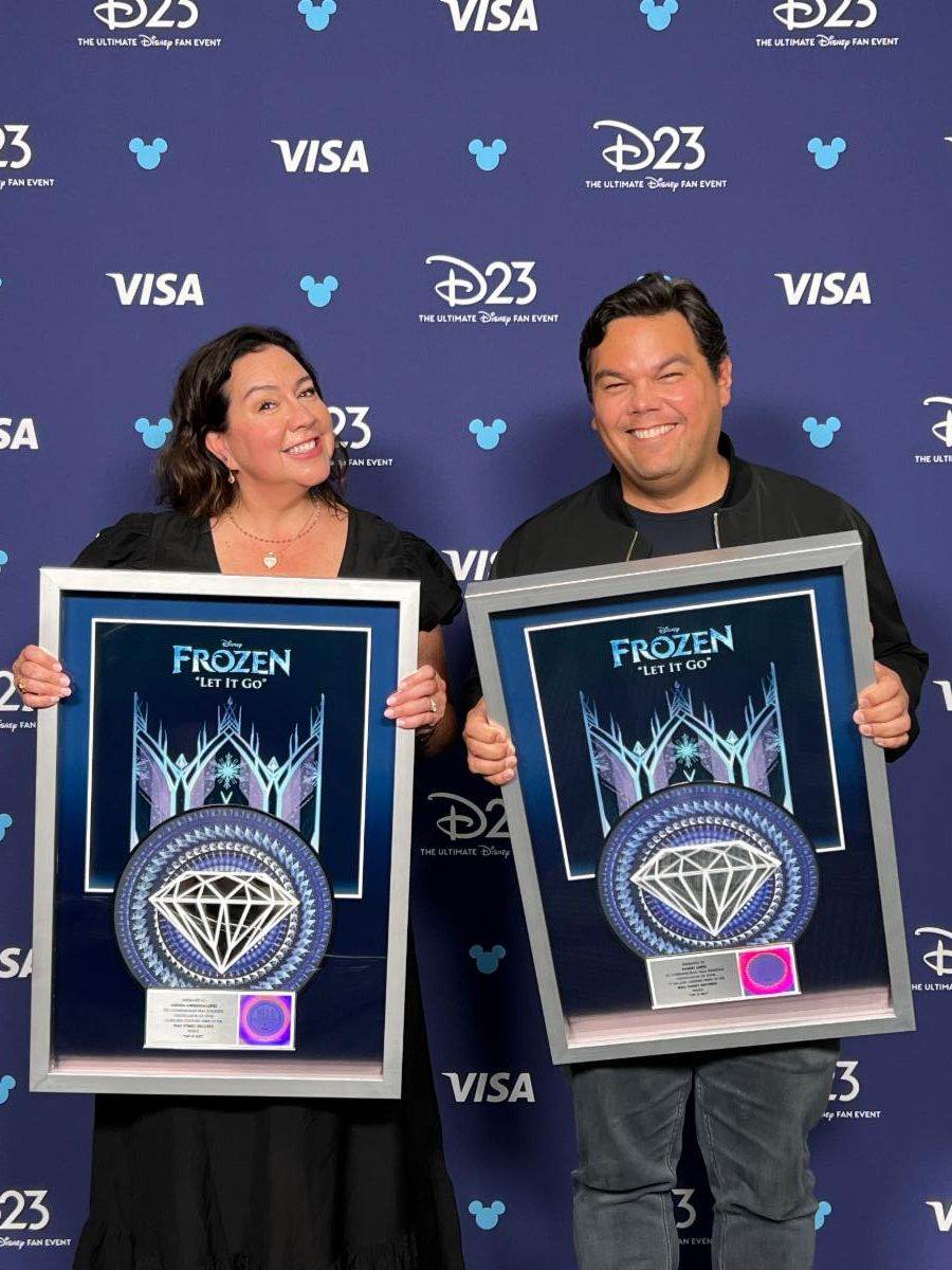 - At D23: The Ultimate Disney Fan Event, Disney Music Group President Ken Bunt presented a Diamond plaque to Kristen Anderson-Lopez and Bobby Lopez, the writers of Frozen’s songs.