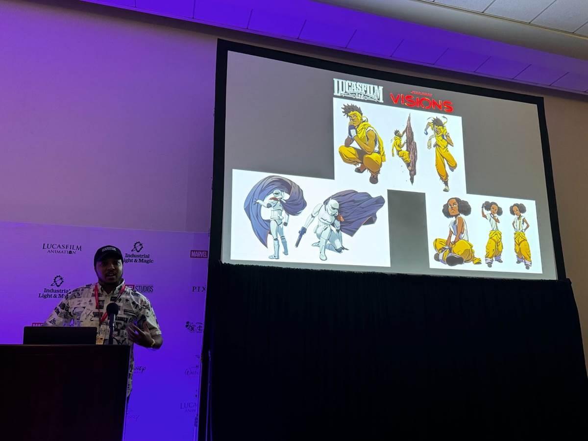 Being back in Pasadena for LightBox Expo was a homecoming for LeAndre Thomas, who won Best Director at the 2019 Pasadena Film Festival for his live-action short film Mirror. Filmmaking is his passion, and he stays close to it in his day job as Manager of Franchise Video Assets at Lucasfilm, Ltd. He recently wrote and directed his first animated short, “The Pit," which was part of Volume 2 of Star Wars: Visions. LeAndre got to celebrate with a crowd full of animation industry enthusiasts during a panel titled “The Making of Star Wars: Visions - The Pit," moderated by Lucasfilm’s Vice President of Animation Development and Production, Josh Rimes.