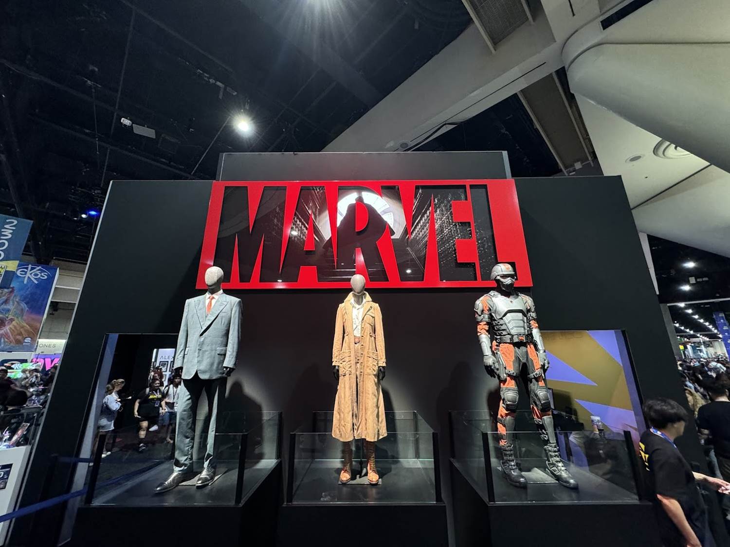 The Marvel booth at this year’s San Diego Comic-Con includes a look at Marvel Studios’ recent and near future slate through costumes.