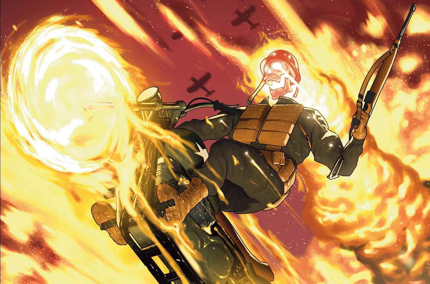 - 1944: As U.S. Sergeant Sal Romero is parachuting into Nazi-occupied Europe, young Nazi officer Felix Bruckner becomes the host for an unspeakable evil. In the aftermath of their violent meeting, Romero is reborn as Ghost Rider ’44, who sets out not only to take revenge on Bruckner and the Nazis, but to save mankind from annihilation!