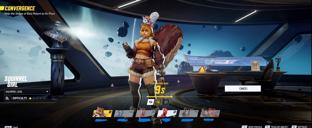 My first game, I decided to play as Squirrel Girl. While other similar games, like Overwatch 2, require certain roles to be filled, Marvel Rivals allows players to choose whatever hero or villain they would like to play as. I was welcomed into a match of Convergence and I was responsible, along with my 5 teammates, to move the convoy across the map. It was surprisingly action packed. I was facing off against the likes of Iron Man, Magneto, Black Panther and more, while fighting alongside Groot, two Spider-Men, and Mantis. While we did end up (barely) losing, it was a great first step into the game, and I was surprised at how much fun I had. I played for a few hours, trying to get every gamemode, and found myself enjoying the random assignments and varying maps. I did not play Quick Matches with any other character, but did try my hand at a few in the practice arena. I just couldn’t get over Squirrel Girl’s ultimate, which sees her send out a hoard of squirrels to attack opponents.