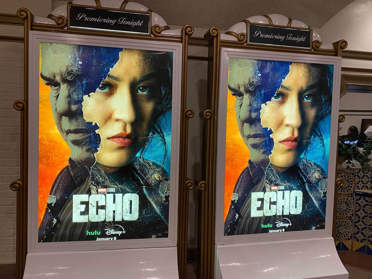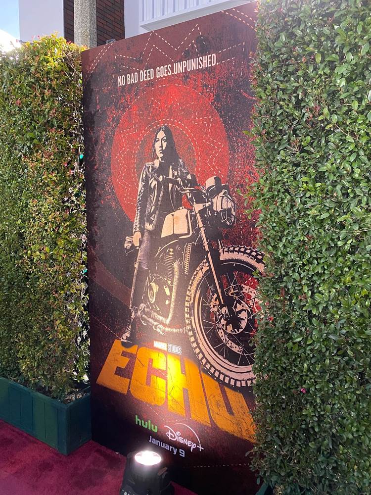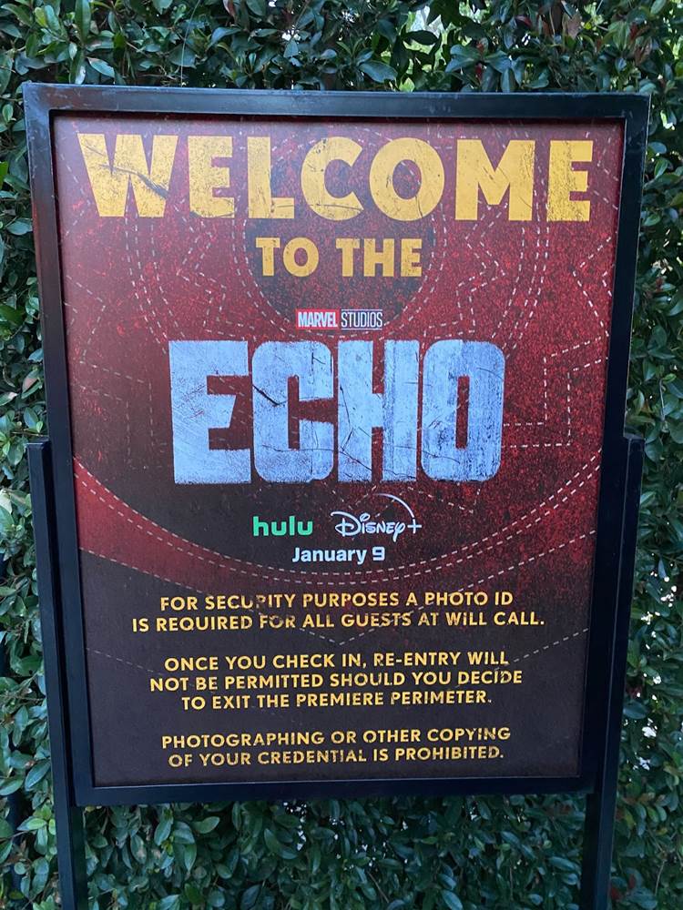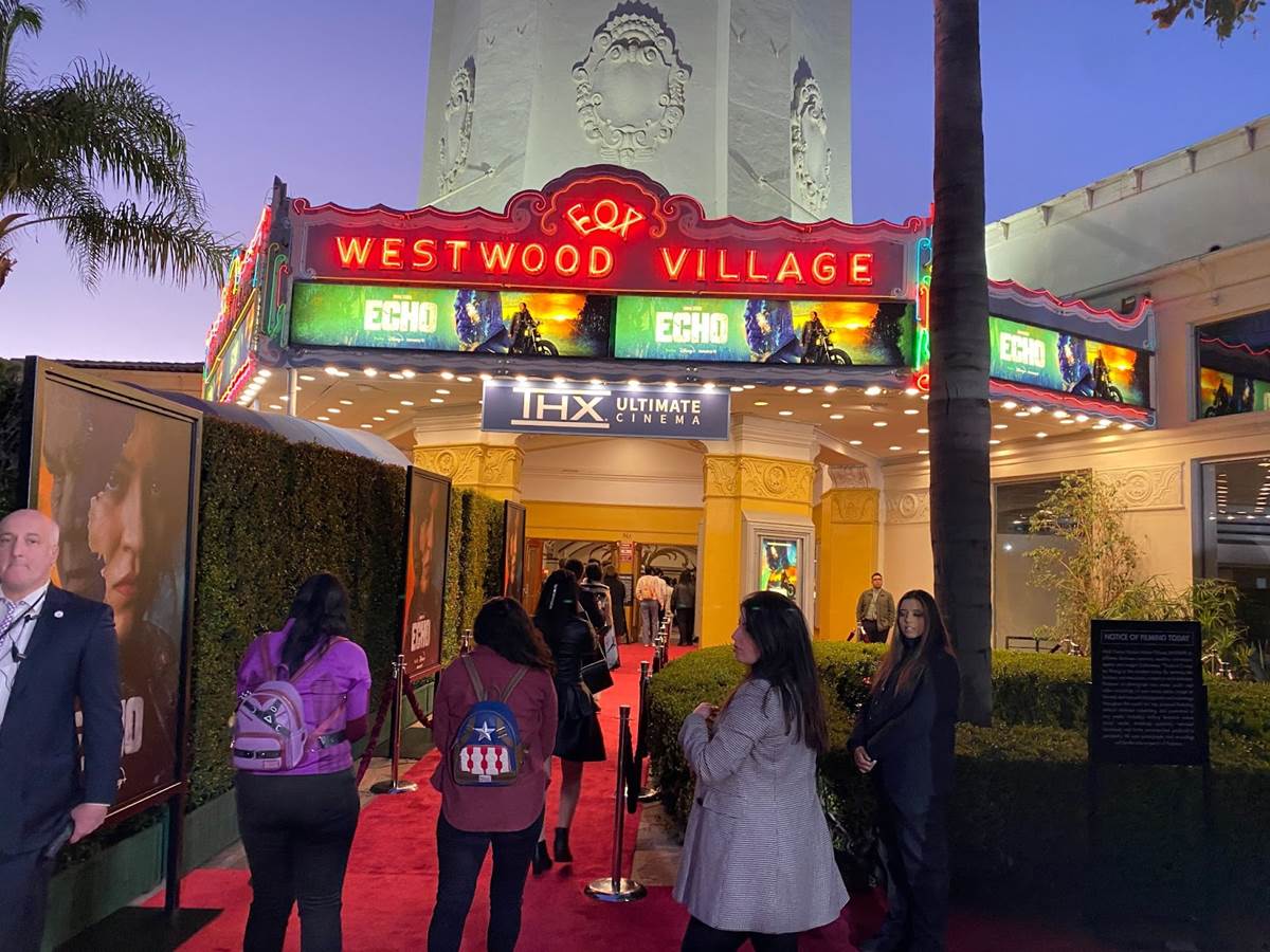 Arriving at the historic Westwood Village theater, it was cool to see the venue decked out in imagery from Echo and Marvel Studios.