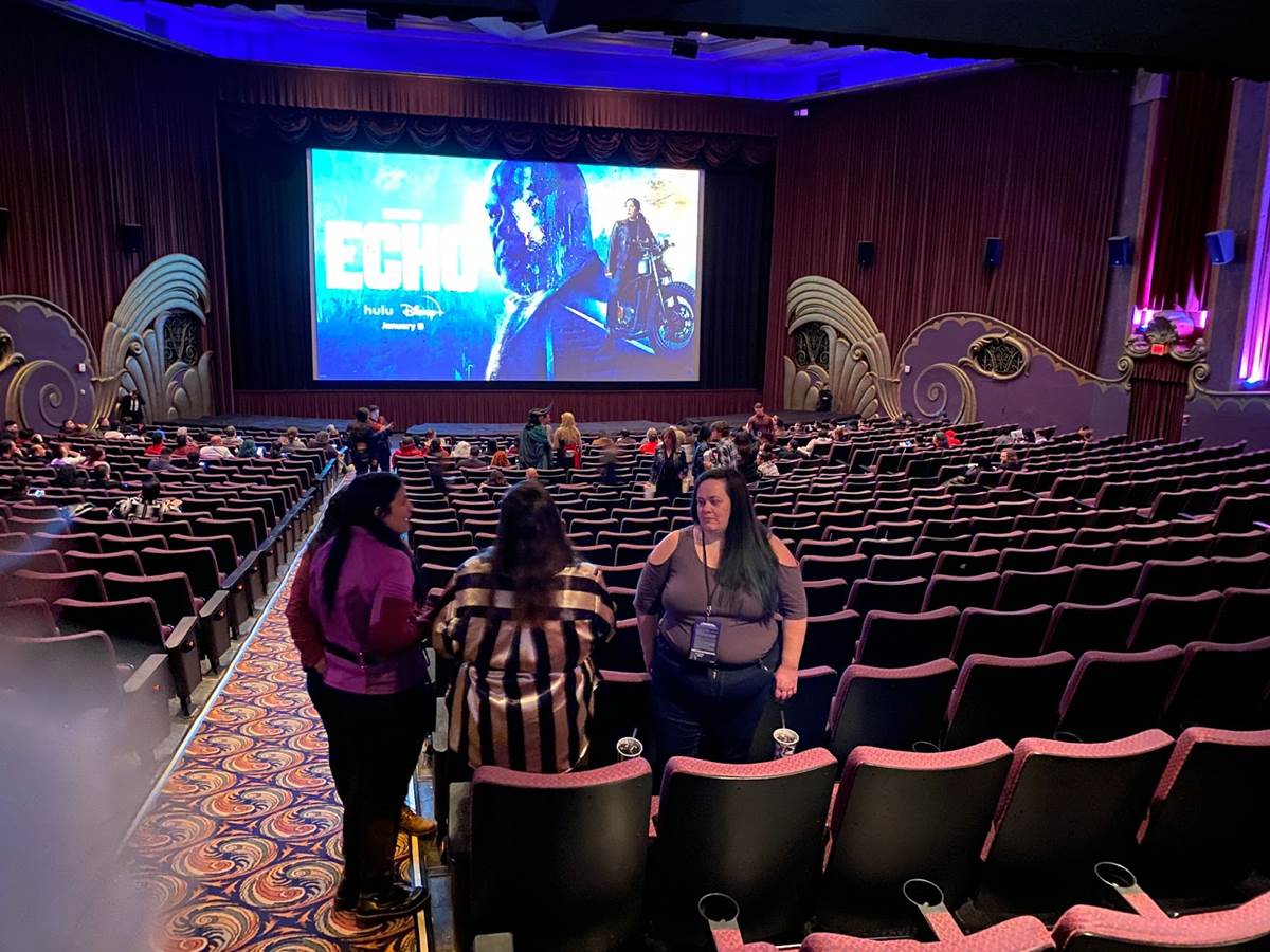 Inside the Westwood Village theater we found more Echo posters, complimentary popcorn and beverages for guests, and attractive key art being projected on the screen in the auditorium. During the Launch Event they played the first three episodes of Echo, with all five installments of the series set to drop tomorrow. I really enjoyed the episodes we saw and I’m very much looking forward to watching the remainder of the show.