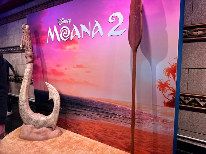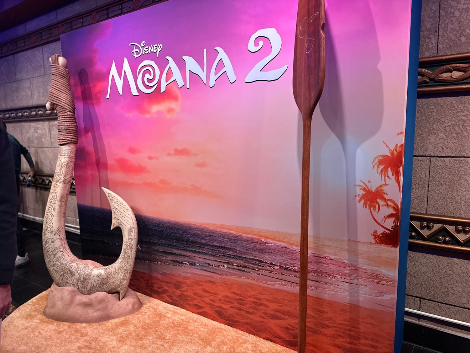 Guests could pose for photos with statues of Moana and Maui, along with their trusty paddle and hook.
