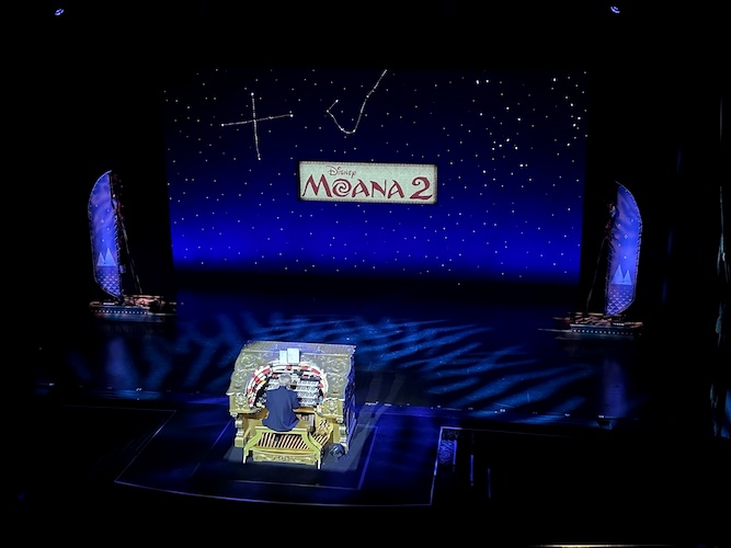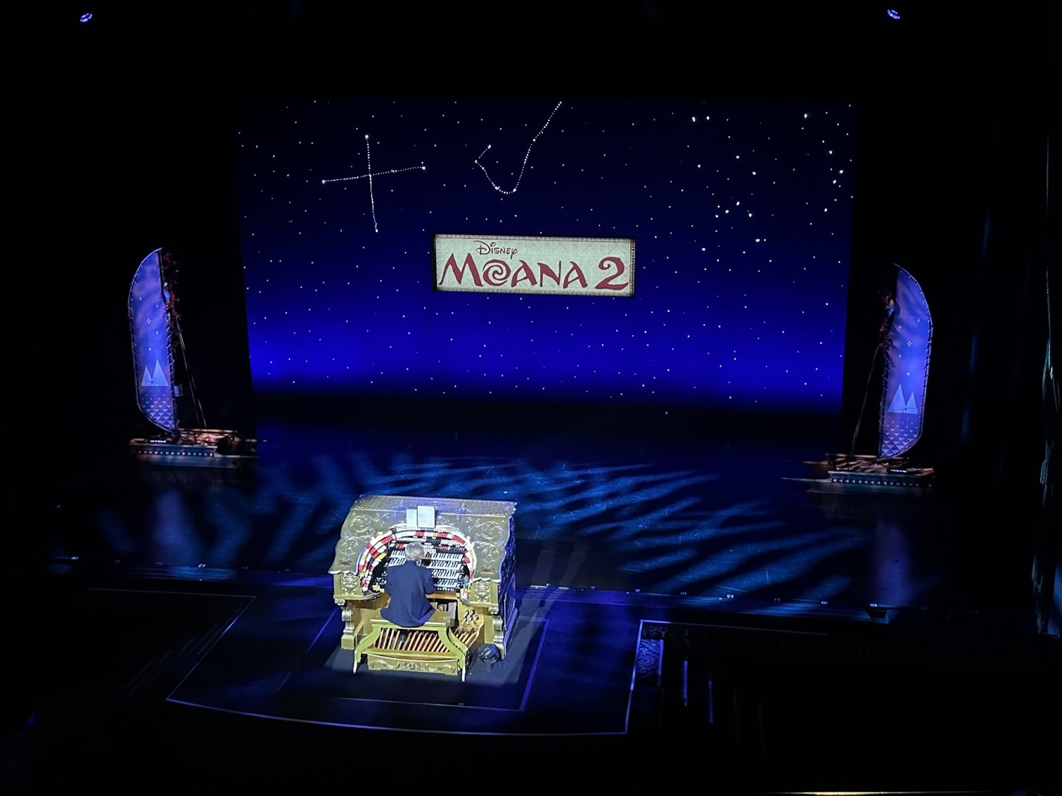 One of the most iconic parts of seeing a movie at The El Capitan Theatre is the pre-show performance from the theater’s organist, quite often performing songs from the film’s soundtrack. Moana’s ship and iconography from the film also decorated the stage.
