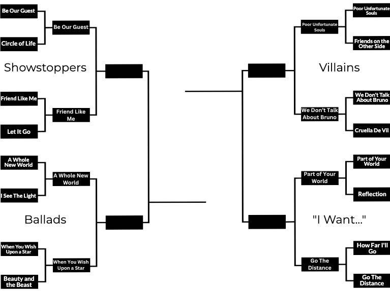 Be sure to come back tomorrow as we reveal the winner of today’s poll and continue onward through our bracket to crown the best Disney song!