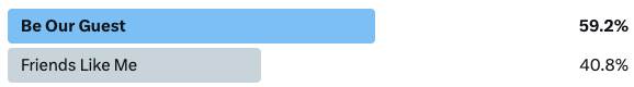 Before we move on to our next matchup, let’s take a look at our last result. “Be Our Guest" served up another victory, defeating “Friend Like Me" fairly handily to claim the first spot in our Final 4. The dream of a Beauty and the Beast repeat is still alive.