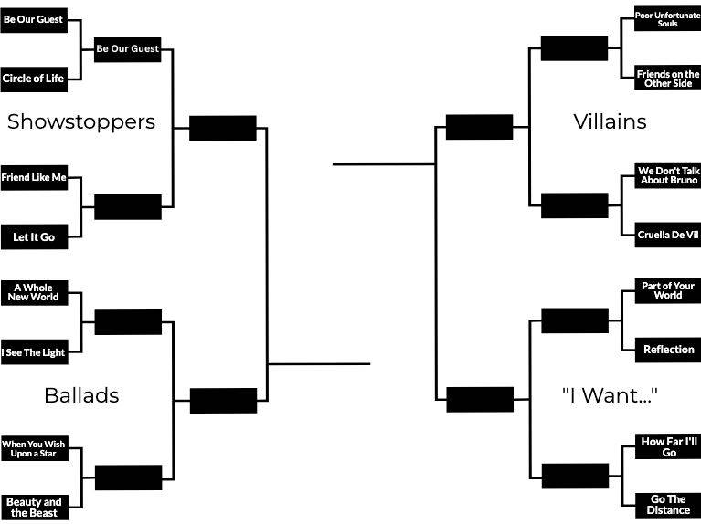 Before we move on to our next matchup, let’s take a look at our last result. “Be Our Guest" survived a very close matchup against “Circle of Life," which almost delivered a big upset in our very first matchup.