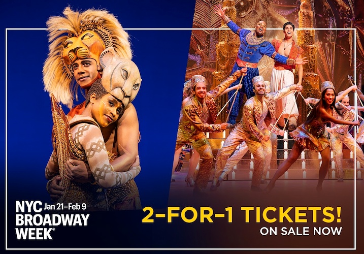- Those headed to New York City for this year’s Broadway Week can participate in two exciting discounts for Disney’s The Lion King and Aladdin.