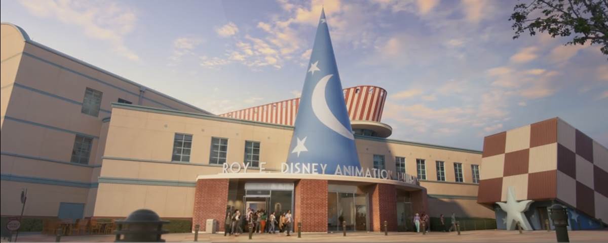 The trailer opens up looking at the Roy E. Disney Animation building, located across from the main Walt Disney Studios lot in Burbank. Colloquially referred to as “The Hat Building" by many animators, artists, and fans, the building opened in the 90’s, reportedly announced at a wrap party for Beauty and the Beast. (More about this can be seen in the documentary, Waking Sleeping Beauty, which I highly recommend). The first film produced at this studio was The Hunchback of Notre Dame, and every full-length Walt Disney Animation Studio feature that followed has been made here, save for Mulan, Lilo & Stitch, and Brother Bear, which were made at the now shuttered Florida animation studio that was located in what is now Disney’s Hollywood Studios at Walt Disney World.