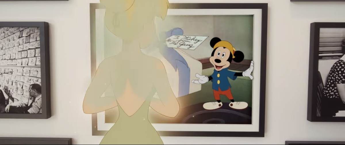 Of course, the studio famously “was started by a Mouse" so it is absolutely no surprise that he has a prominent role (at least in the trailer). As Tinker Bell flies by, who apparently summons everyone out of the art as the last of the artists leave the studio, Mickey and Minnie spring to life from some nearby art.