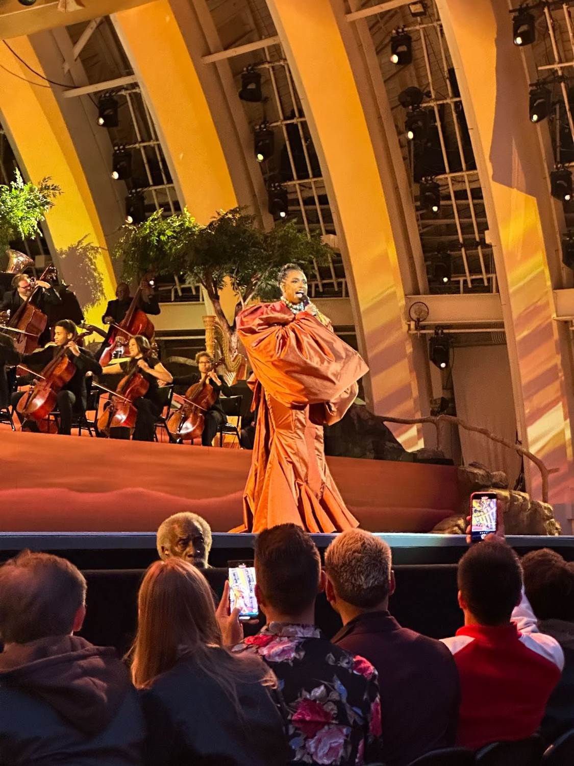 The Live-to-Film concert began at 8pm, kicking off with an epic performance of “Circle of Life." Dancers clad with costumes from the Broadway show crowded the isles of The Hollywood Bowl in the opening number. Lebo M., the original singer of the iconic song, joined in the performance as did Jennifer Hudson. It was an incredible way to commence the two and a half hour event.