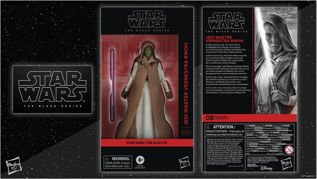 STAR WARS: THE BLACK SERIES - JEDI MASTER VERNESTRA RWOH from Hasbro - “A high-ranking Jedi, Vernestra Rwoh investigates the strange occurrences surrounding Osha Aniseya and Master Sol, concerned of what they might portend. This STAR WARS action figure is detailed to look like Jedi Master Vernestra Rwoh from the STAR WARS: THE ACOLYTE live-action series on Disney+. Display STAR WARS fandom on your shelf with window box packaging featuring sleek character design. Features a soft goods robe and comes with a Lightsaber accessory." (Spring 2025, available for pre-order this Saturday evening from Hasbro Pulse)