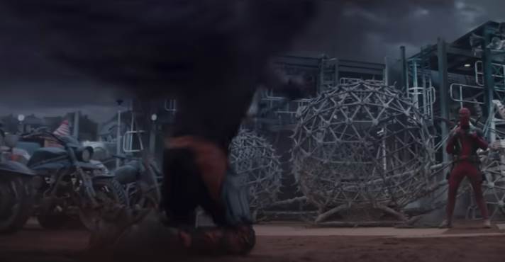 After Wade dubs himself “Marvel Jesus," we get a quick look at him gearing up, which will come back into play later. Interestingly though, we next see him fighting the TVA. The fight sequence is chopped up and it becomes difficult to tell how many different scenes we are actually seeing, but we also see him fighting in from of what appears to be a giant crumbled 20th Century Fox logo.