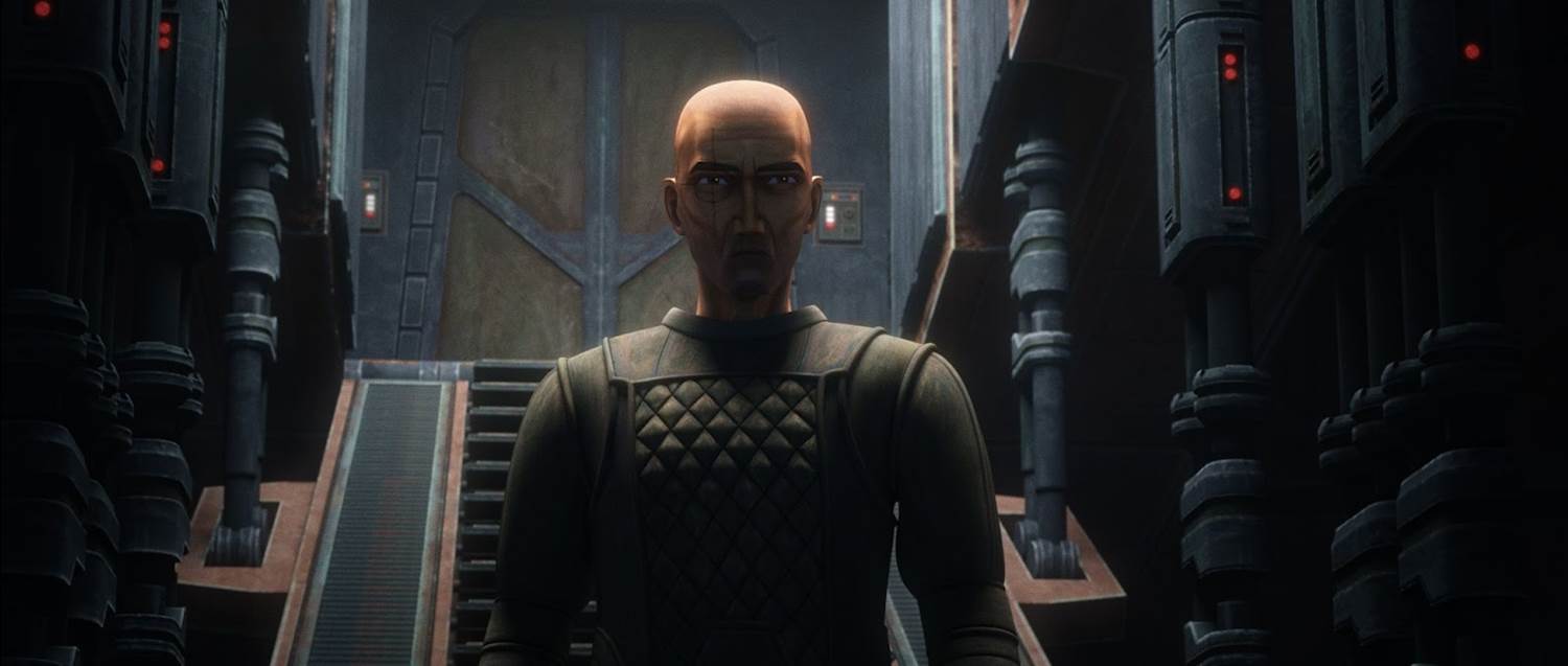 Meanwhile, back on Weyland (the planet that houses the Mount Tantiss facility), Dr. Royce Hemlock (Jimmi Simpson) interrogates Nala Se (Gwendoline Yeo) about Omega and Crosshair’s escape. During this conversation, Nala Se claims that Omega’s shocking blood test results were a “false positive," but this doesn’t deter Hemlock from wanting to capture the clone once again. Then we cut to our heroes, who have walked to the spaceport in the hopes of boarding another shuttle off-world. They don’t have chain codes they can show to the customs officer, so Omega offers to make a bribe, which turns out to be much steeper than she was anticipating. This forces our two travelers to come up with another plan– card gambling in a nearby cantina.