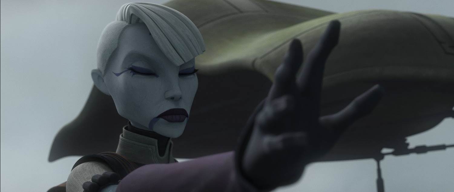At the end of last week’s episode of The Bad Batch, we saw (what I assumed was) Fennec Shand betraying Clone Force 99 to an unnamed contact. And pretty quickly in today’s episode, entitled “The Harbinger," we find out who that contact was: Asajj Ventress (voiced by actress Nika Futterman, reprising her role as the Force-sensitive Dathomirian from Star Wars: The Clone Wars). It wasn’t a terribly big surprise, as the powers that be at Lucasfilm had already spilled the beans on Ventress’s return via the series’ trailers and press releases. But what was at least a little surprising was the context in which she pops up– it seems Asajj isn’t here to kidnap or eliminate Omega (Michelle Ang) as one might have guessed, but instead to test the young clone for latent Force abilities.