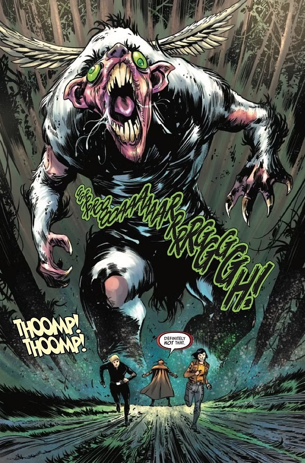 The Battle of Jakku - Republic Under Siege #2 begins on the swamp planet of Lehanis, where Jedi Knight Luke Skywalker and New Republic pilot Rynn Zenat have just encountered the rogue archaeologist Doctor Chelli Lona Aphra, who stole an ancient Jedi compendium from them and the Acolytes of the Beyond. But before Dr. Aphra has a chance to explain herself, the trio is attacked by an enormous rabbit/bird-like creature called a Klyff’wat (newly introduced in this comic). Then writer Alex Segura and artist Stefano Raffaele cut to an Imperial Star Destroyer in orbit around the planet Souwecer (also new), where a cabal of officers are meeting to discuss the future of the Galactic Empire in the wake of Emperor Palpatine and Darth Vader’s deaths. To me, this is the most interesting scene so far in the entire Battle of Jakku maxi-series so far, as it really gets into the nitty gritty of what’s going on in the shadows, and reintroduces key players like Grand Admiral Rae Sloane, Grand Moff Randd (originally from author Claudia Gray’s Star Wars: Lost Stars novel) and Counselor Gallius Rax– the latter of which we know is furtively leaking Imperial intelligence to the fledgling New Republic.