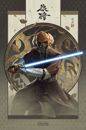 - Characters represented include Luke Skywalker, R2-D2, Yoda, Grogu, Ahsoka Tano, Han Solo, Hera Syndulla, Luthen Rael, Anakin Skywalker, Padme Amidala, Boba Fett, Clone Troopers, Plo Koon, Obi-Wan Kenobi, C-3PO, and more. But my favorite might be the one that pays homage to Akira Kurosawa’s samurai movie posters.