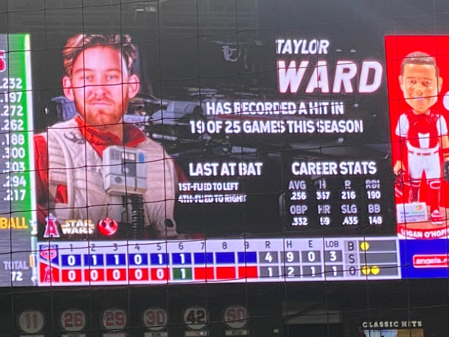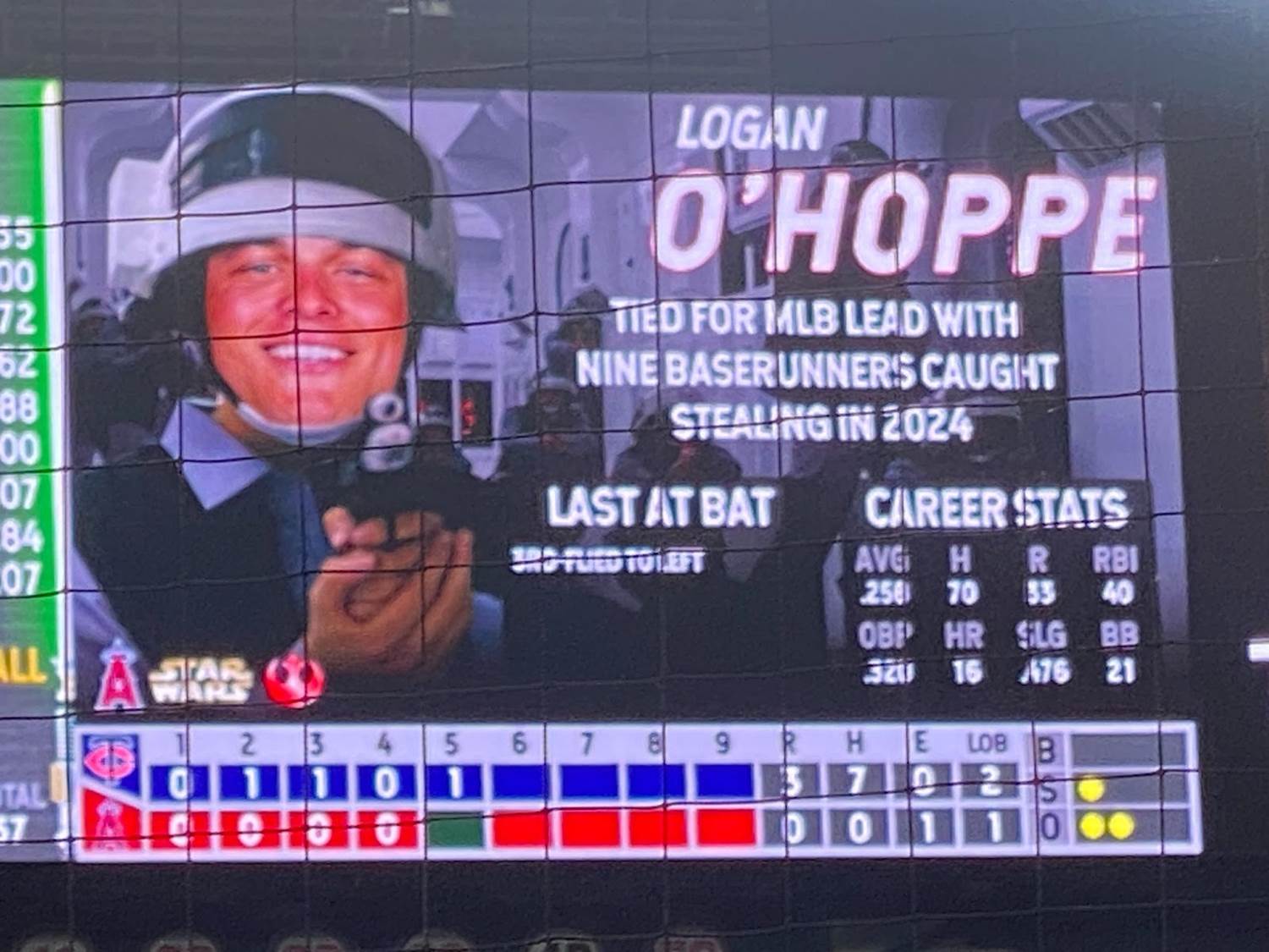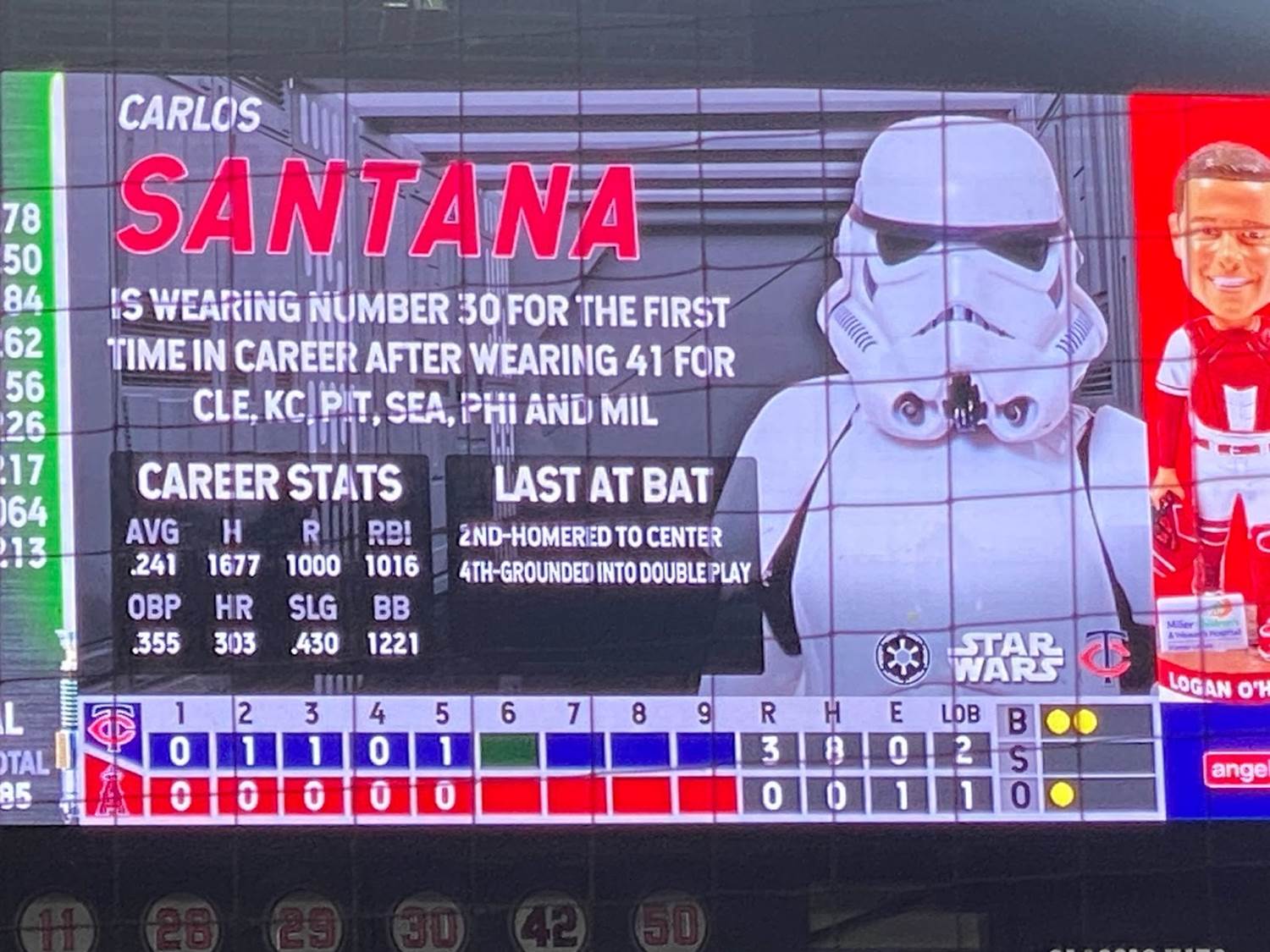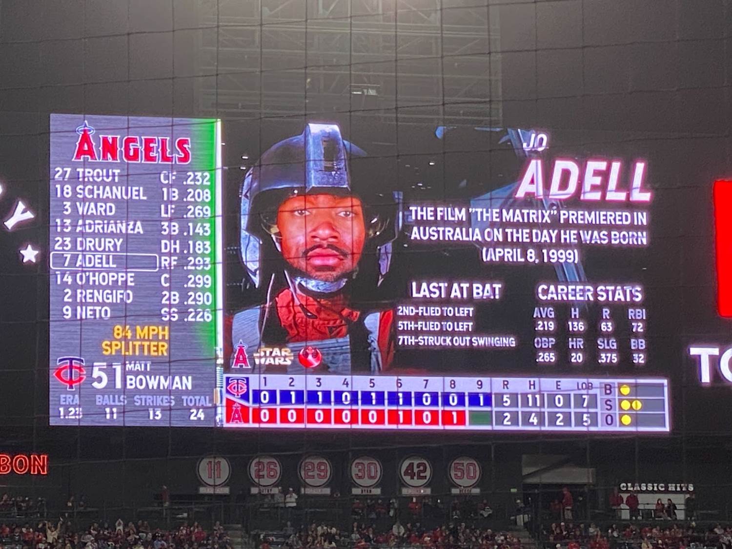 Another pretty memorable aspect of Star Wars Weekend at Angel Stadium was that each player was assigned his own Star Wars character on the scoreboard, with the visiting Minnesota Twins being represented by villains and the Angeles naturally playing hero characters.