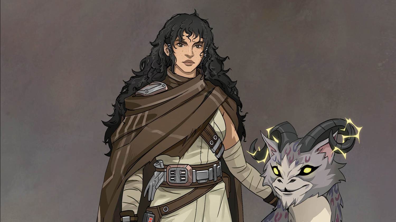 This novel focuses on three main protagonists– which is a welcome number compared to some of the overstuffed adult-targeted High Republic books– plus a few supporting cast members. There’s youthful Mirialan Jedi Knight Vernestra Rwoh (who we learned at last year’s Star Wars Celebration will be featured in the upcoming live-action Disney+ series Star Wars: The Acolyte), who has spent the year since the fall of Starlight Beacon in seclusion on a remote planet, finding her connection to the Force again. Then there’s young genius Avon Starros, the daughter of disgraced Senator Ghirra Starros and an engineering student at a university on Coruscant under an assumed name. And lastly we’ve got former Tiikae deputy Jordanna Sparkburn, who now travels around the galaxy running odd jobs for Pirate Queen Maz Kanata with her girlfriend Sylvestri Yarrow and their pet vollka Remy. As you might guess by the attractive cover illustration, Defy the Storm sees these three characters venturing into Nihil territory together, but first it has to gather them all in the same place.