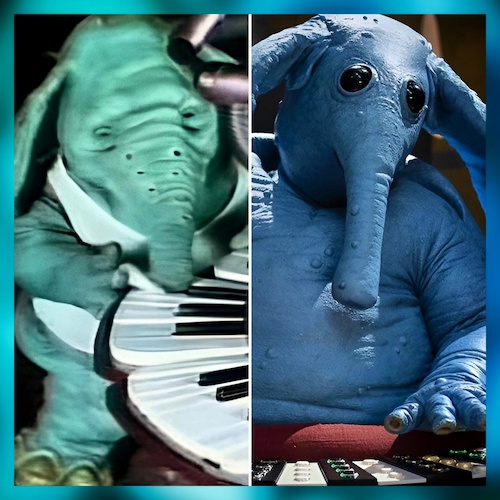 7 - The name of Neel’s species has not been identified, but the blue elephantine child does resemble both Max Rebo– though Ortolans do not have arms– and Hooter from Disney Parks’ “Captain EO."