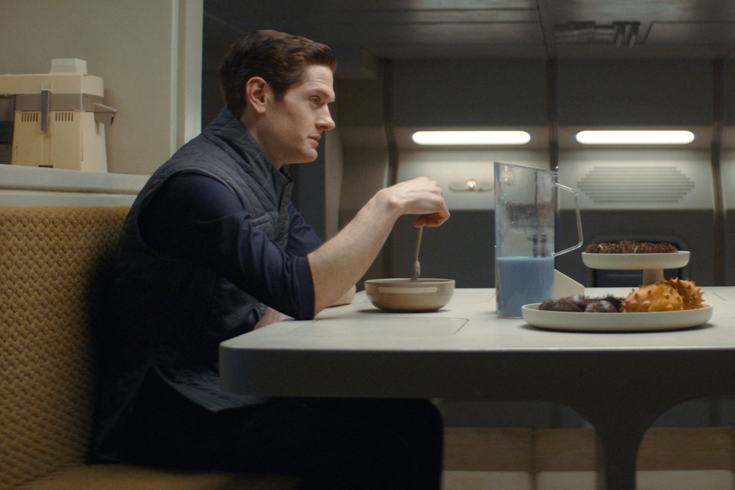 5 - We see Wim preparing a bowl of cereal for breakfast. We previously saw the character of Syril Karn eating a different-colored cereal in Star Wars: Andor. The accompanying blue milk goes back to the original Star Wars film, of course. Notably, Syril also collected action figures, so he had a lot in common with Wim.