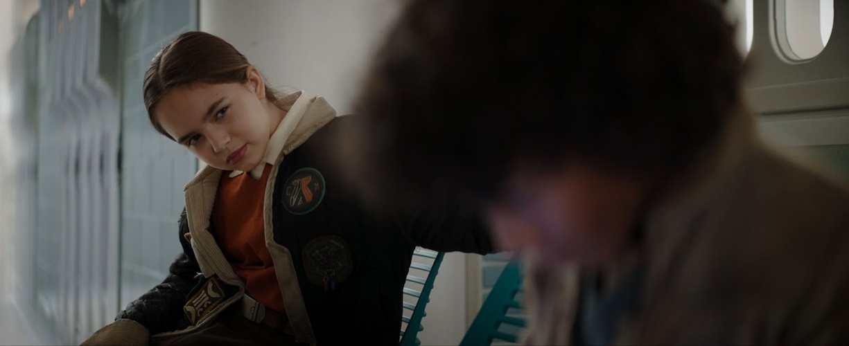 We see that Wim’s stern-yet-distant father (Tunde Adebimpe, also from Twisters) and Fern’s overbearing politician mother (Better Call Saul’s Kerry Condon) are separately concerned for their children’s well-being, but that doesn’t stop the kids from sneaking back into the woods to break into the hatch– Wim had accidentally let the location slip during his shared detention with Fern– and the girls want to scavenge new power converters (get it?) for their hoverbikes from this clandestine location. But once they break inside, they discover that it’s not a Jedi temple after all, but an ancient starship that’s still in operation– after some quick tinkering on KB’s part. Naturally, Wim ends up pressing a button he probably shouldn’t have pressed and the ship unburies itself from the planet’s surface and launches into space, while Wim’s father– who’s been searching for his suddenly vanished son in the woods– watches helplessly from below. Aboard the vessel (which is functioning on autopilot) there’s a derelict droid that suddenly wakes up, but that’s nothing compared to the fact that our protagonists are launched into hyperspace, unaware of to what destination this adventure might be taking them.