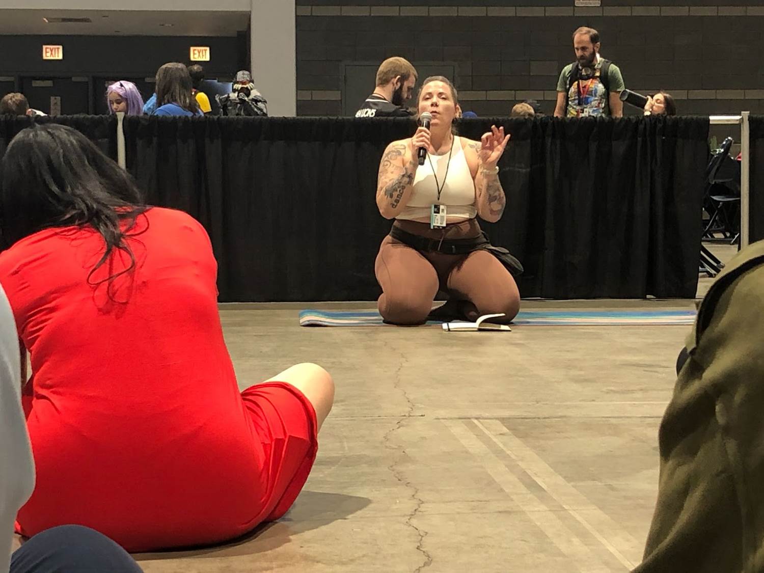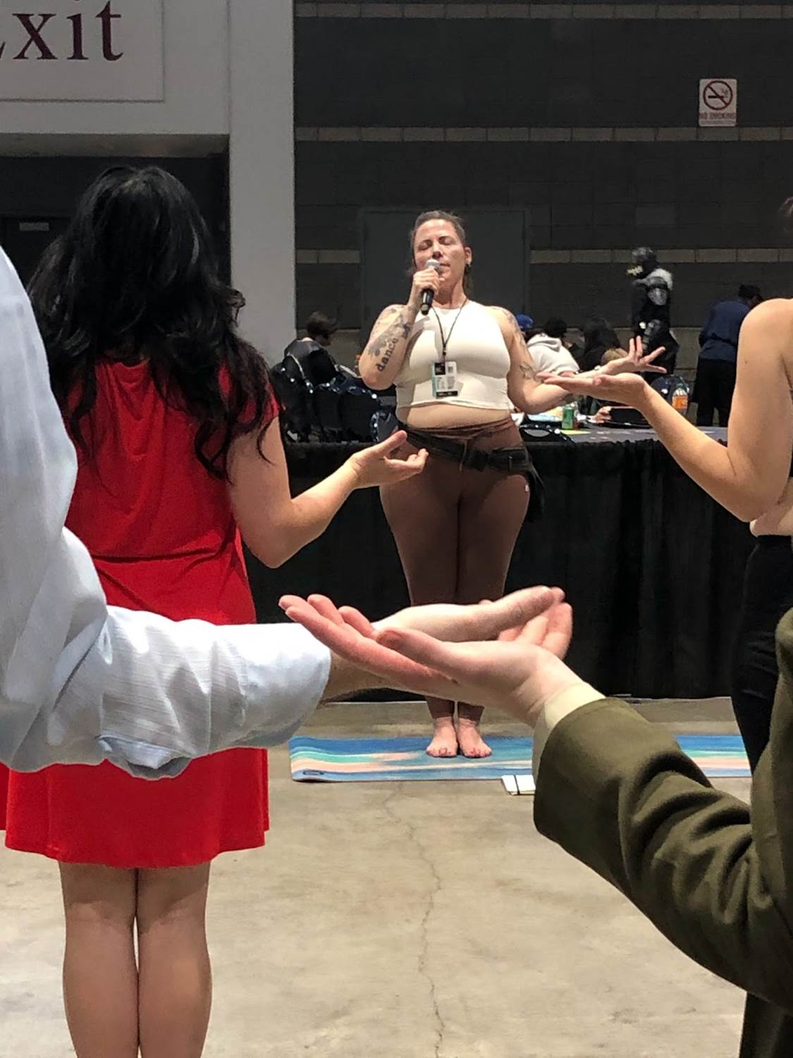 If you are familiar with yoga, then you know that we were on the floor, on our bellies, and on hands and knees; which isn’t exactly comfortable on a cement floor. But no one seemed to mind, and while this was definitely more advanced than the last time, it was less accessible. Everyone was able to modify to what best suited them and one participant even used a chair for some of the more challenging poses.