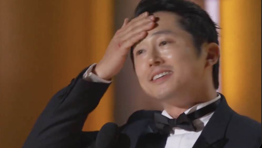 - While on stage, Yeun was getting a bit emotional, and started his speech before he realized what he was about to say sounded very much like a different, award-winning film.