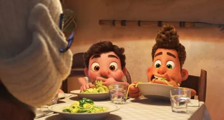 This idea comes to a head when the two boys - Luca and Alberto - are invited to dinner with their new human friend, Giulia, and her fisherman father. This scene, which plays with the space of the kitchen and dining table, is what I would like to see in a theater. It’s classic comedy fare as the boys are desperately trying to keep their secret, and with the idea that water and getting wet could expose them at the dinner table - you know, where they are DRINKING WATER - fighting like boys around an all-too suspicious cat named Machiavelli… It's classic cinema and should be on the screen of one. Sure, there is the climactic bike race for the coveted Vespa, but that’s a given isn’t it?