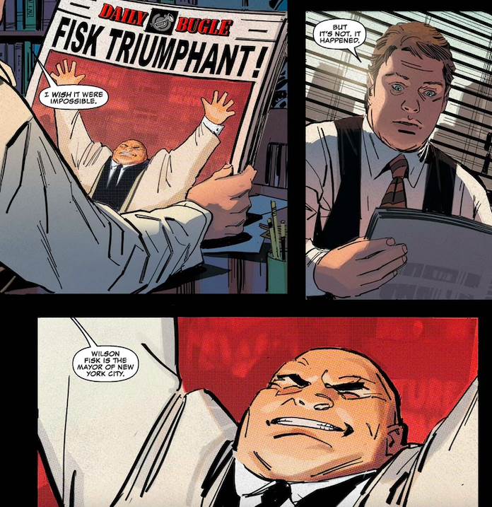 Now you don’t need to know everything about Marvel to understand what’s happening there. Clearly, the Kingpin is interested in becoming the Mayor of New York. However, what you may not know, is that he did achieve that goal in the comics.