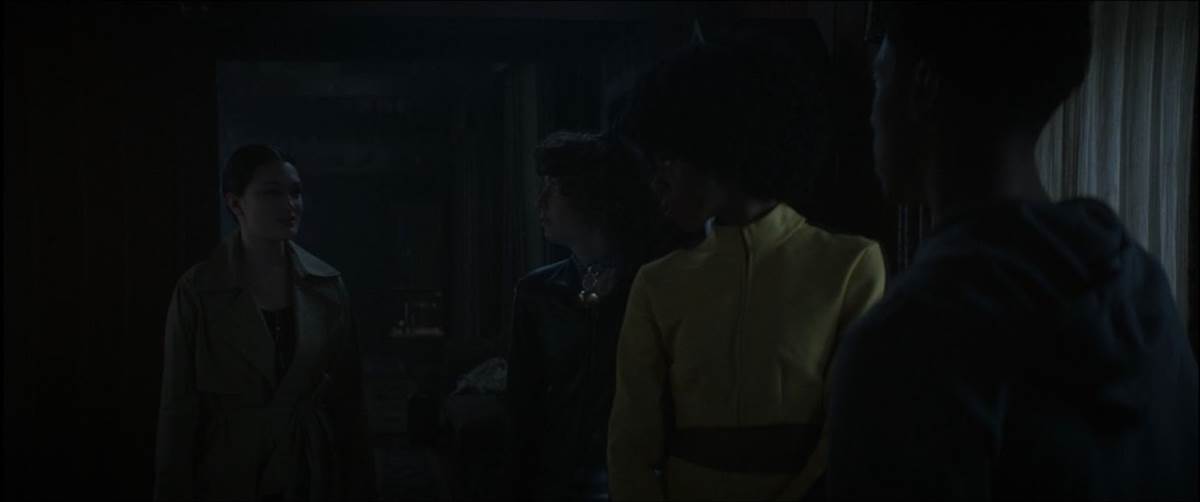After the sun sets, Isaiah, James, and Allison arrive at the old Biddle House. Isaiah’s dad always uses the same code on his lock boxes, and he quickly produces a key to the old home. He knows the new owner doesn’t move in until tomorrow, so they will be free to have a Halloween party there without interruption. They change into their costumes, with Allison as The Bride from Kill Bill and James as a “Sexy Cat" (although he looks like Cat Noir without the mask). Isaiah puts on a blond wig and takes off his shirt, but neither Allison nor James is able to guess who he is (Thor), so he chooses to go sans costume.
