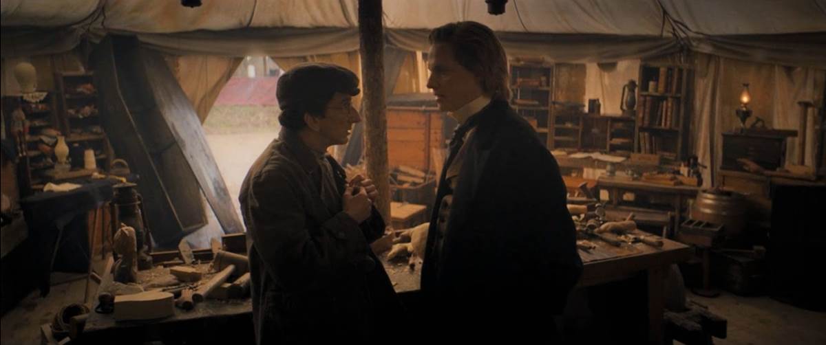 Flashing forward to 1885, that same man, now going by the name Kanduu (Chris Geere), is in New York City and walks into the fairgrounds of Mahar’s Carnival of Wonders. He examines a tent that contains empty coffins, a woodcarver’s desk, and carings of puppets, one of which is still in progress. A man enters and introduces himself as Franz Mahar (Paul Rust), the owner of the carnival. Kanduu introduces himself, and Mahar is already familiar with the name, calling him a magician. “I am not a magician," Kanduu corrects Mahar, animating the roughly carved dummy for a moment. “I’m real," he declares, pointing out that Mahar’s carnival is a failure but promising to change that in exchange for the woodcarver building something for him.