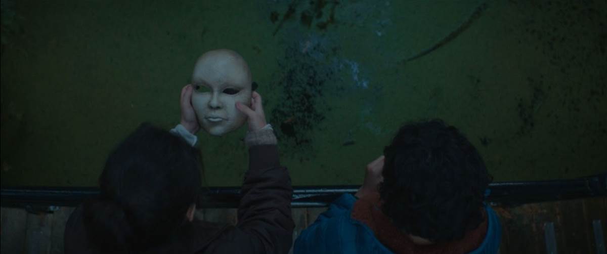 The next day, Isabella and Alan take the mask to a bridge over a creek. They toss it in and walk away, but they don’t know they aren’t alone. Mr. Bratt steps out from the trees where he is watching them. He looks into the water and sees the mask looking up at him.