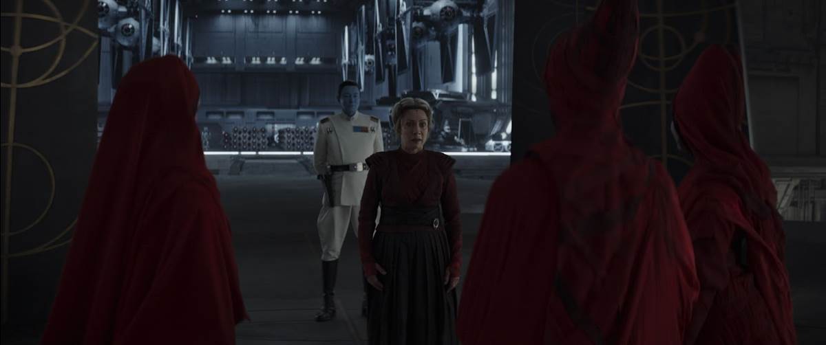 Regardless, the TIE fighters attack from out of nowhere and knock the shuttle out of commission, so the three sort-of-Jedi set out to the Great Mothers’ castle on growler-back. And when Thrawn is alerted to their approaches, he of course orders the Star Destroyer (now retrofitted with the enormous hyperspace ring) to rain down hellfire on them, but being kinda-Jedi they all make it inside to square off against the Night Troopers, which as everyone predicted are pretty much zombie stormtroopers. This is a pretty cool fight scene, and it leads to another showdown between Ahsoka and Elsbeth, while Thrawn and the Great Mothers make their escape. Long story short, Sabine finally uses the Force to grab her own lightsaber during the battle, then to propel Ezra onto the Star Destroyer, while she stays behind to help Ahsoka finish off Morgan and the troopers. Elsbeth dies at Ahsoka’s blade and Tano and Wren are left behind on Peridea, having basically swapped places with the guy they came to rescue. Huyang swoops in at the last second in the very quickly repaired T-6, and the trio blast off into space, where they arrive at the Star Destroyer just in time to receive a dismissive farewell message from Thrawn (who compares Ahsoka to her master Anakin Skywalker) and watch the massive Imperial ship jump into hyperspace.