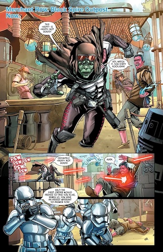 LP: You previously adapted Solo: A Star Wars Story in 2018 with writer Robbie Thompson. As an artist, can you compare and contrast the approach to adapting an existing story, as opposed to drawing a new original story for the Star Wars franchise?