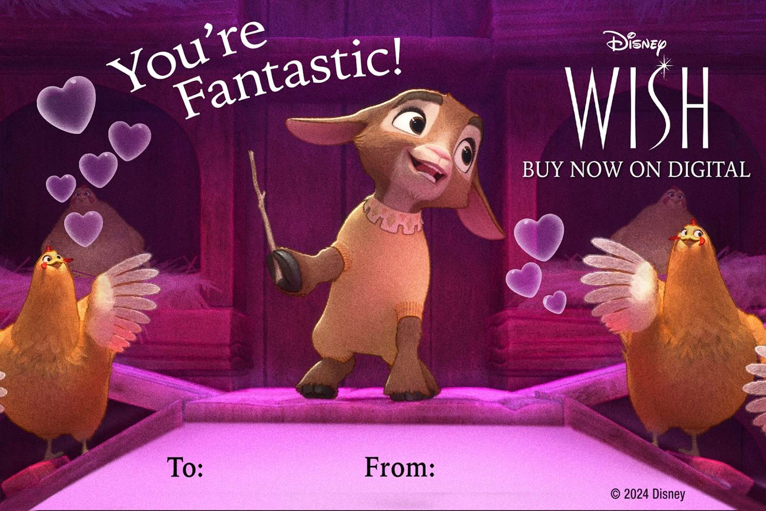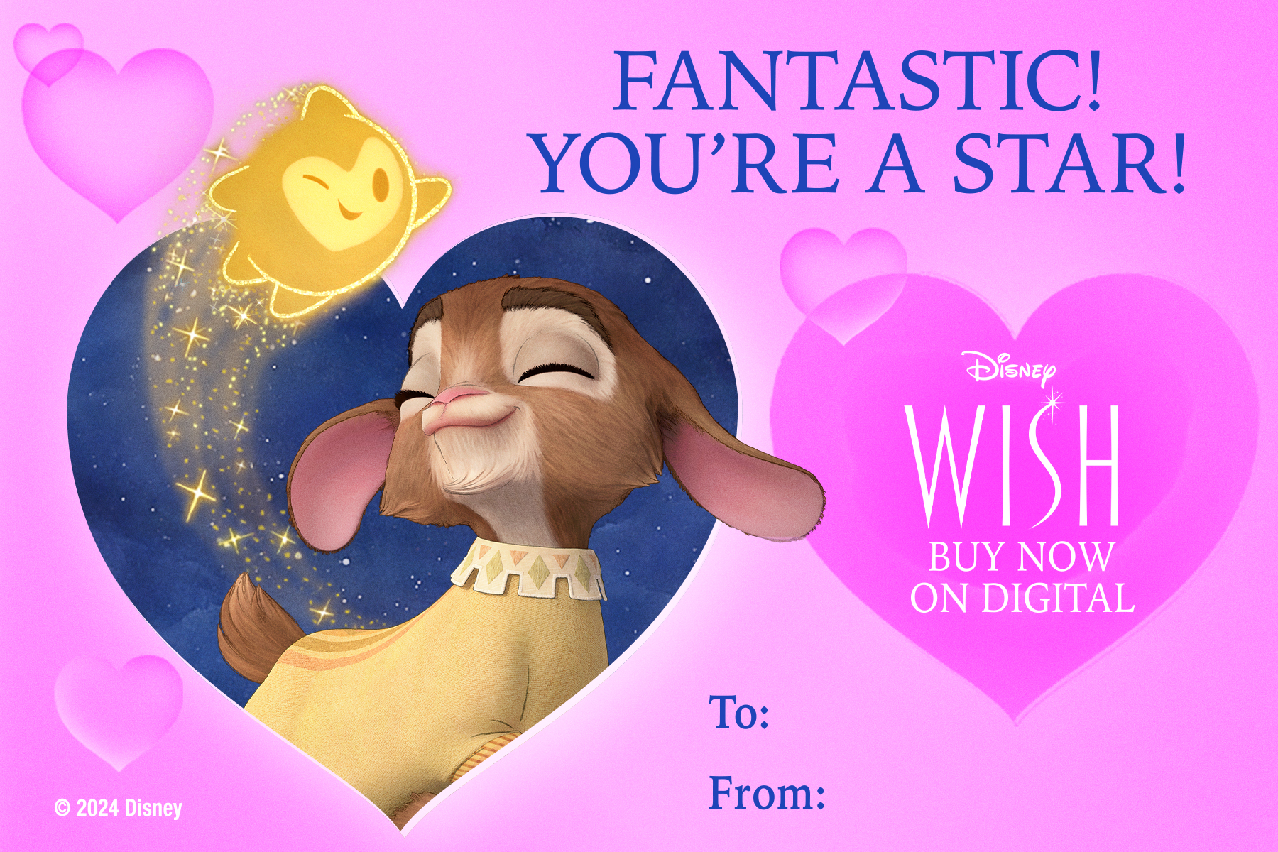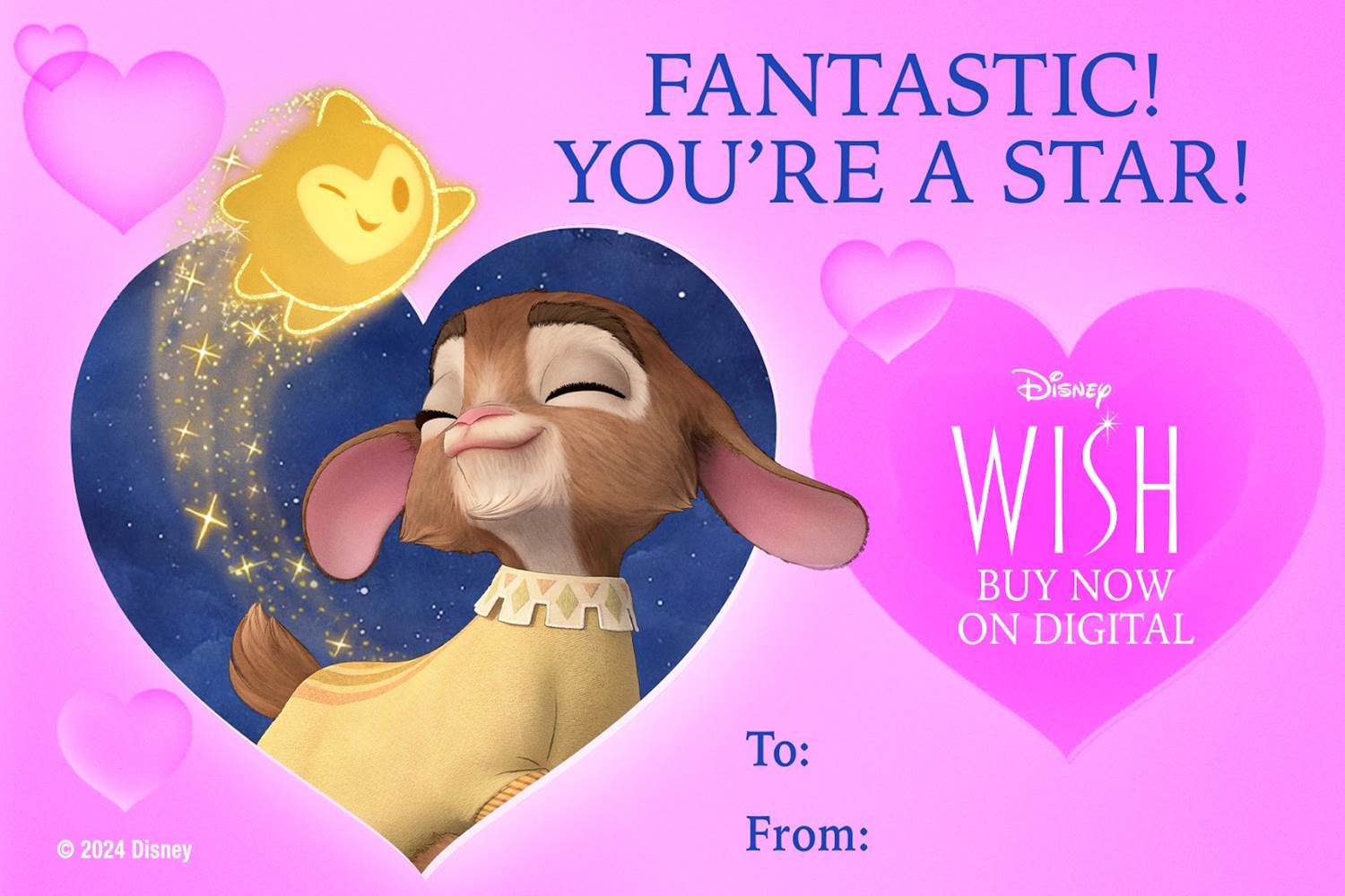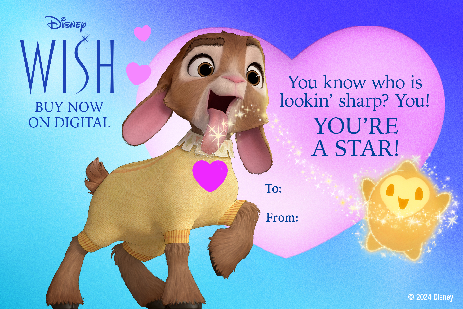 Valentine’s Day is fast approaching — and so is the Blu-ray release of Walt Disney Animation Studios’ Wish. Now, you can celebrate both with these fun “Happy Valentino Day" cards.
