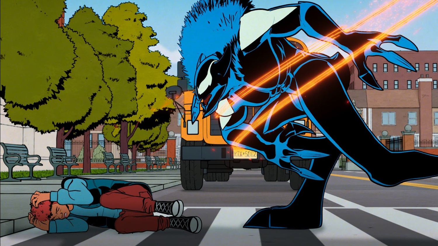 We then get a series of quick scenes wrapping up various storylines and setting up some new ones. Norman returns to the Monolith lab and finds the crawling symbiote, clearly showing interest in the alien goo. Harry works on an email to young geniuses regarding his new company. He sits in front of a whiteboard with a number of familiar names we have not yet seen in this series, including Ned Leeds and Max Dillon (Electro). After Harry sends the email, we see that his new company is the Worldwide Engineering Brigade, or WEB. We have seen WEB in the comics as well as in the WEB SLINGERS: A Spider-Man Adventure attraction in Avengers Campus at Disney California Adventure.
