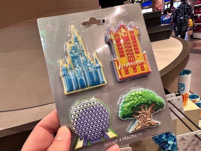 • Each item features Cinderella Castle, Spaceship Earth, The Hollywood Tower Hotel and the Tree of Life, alongside the classic Walt Disney World logo.