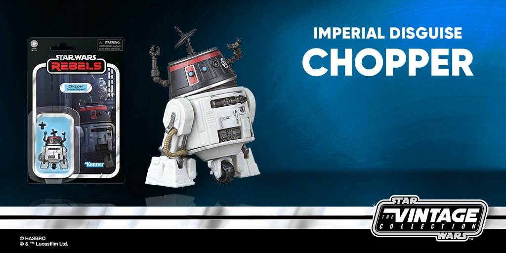 - Hasbro: “Chopper's in disguise! Inspired by Star Wars Rebels, the Vintage Collection Chopper (Imperial Disguise) is now on pre-order at Hasbro Pulse. Complete with Kenner-style cardback, this 3.75-inch droid is a must-have for your collection."