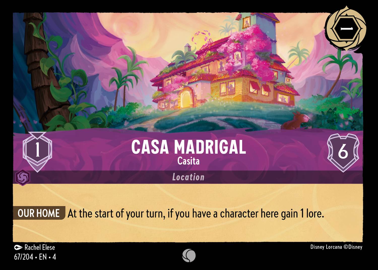 If you’re an Encanto fan, then you’ll definitely want to pick up the Amber/Amethyst starter deck. Not only does it feature Mirabel and Bruno on the cover (corresponding to the deck’s two foil cards) but also includes several other members of the Familia Madrigal including Agustin, Felix, Julieta, Antonio, Camilo, Dolores, Isabela, Luisa, and Pepa. Even the Casita factors into the set as one of the latest Locations cards.