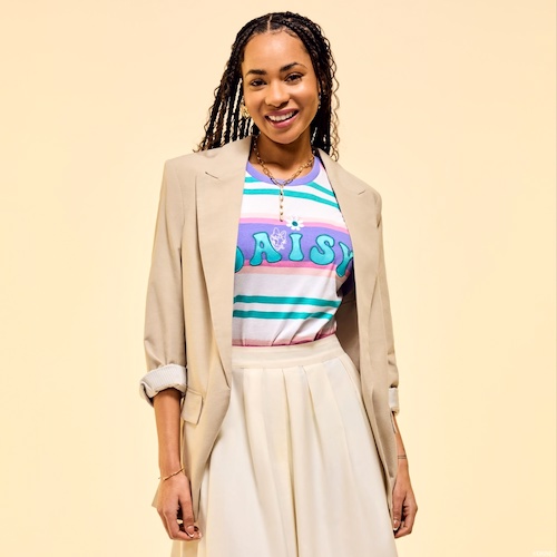 Oh, goodie! It’s time for a shopping spree! Inspired by our favorite feathered trendsetter, this collection highlights Daisy Duck’s world-renowned sense of style and will have you looking just as fabulous.